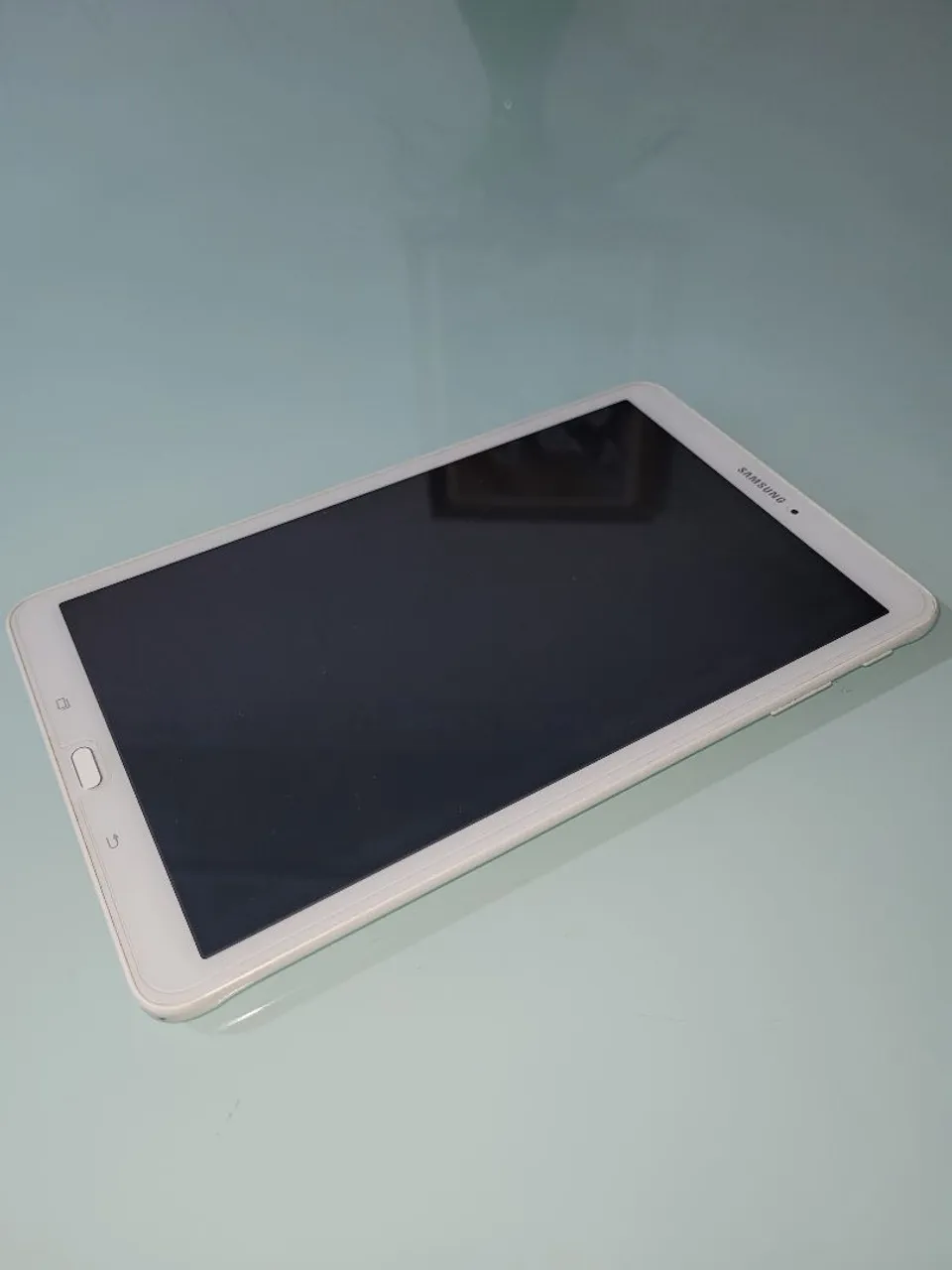 Tablet Samsung Galaxy Tab E, com 8 Gb de memória, aceita SIM card e cartão memória. Em perfeito estado de conservação. É um tablet antigo, com pelo menos 10 anos.