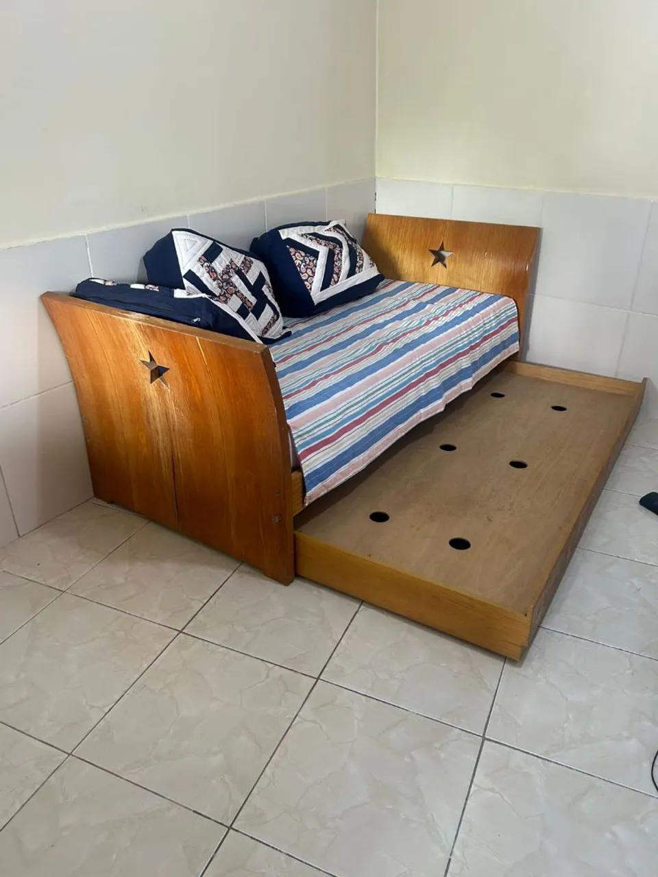 Bicama 100% madeira maciça ? super resistente e durável! Ideal pra quem quer economizar espaço sem abrir mão de qualidade. Já vai com o colchão principal, pronta pra uso!