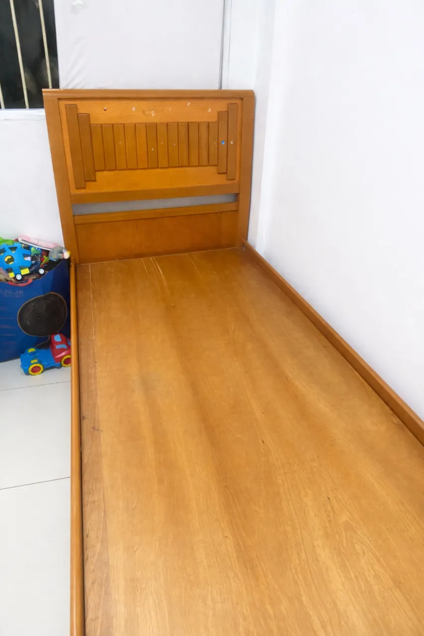 Cama de solteiro em madeira maciça, ideal para quem busca conforto e praticidade. Design clássico e resistente, perfeita para o seu quarto! (tenho um colchão de mola ensacada para ela, mas não tão perfeito, está usado, caso tenha interesse mando foto e valor)