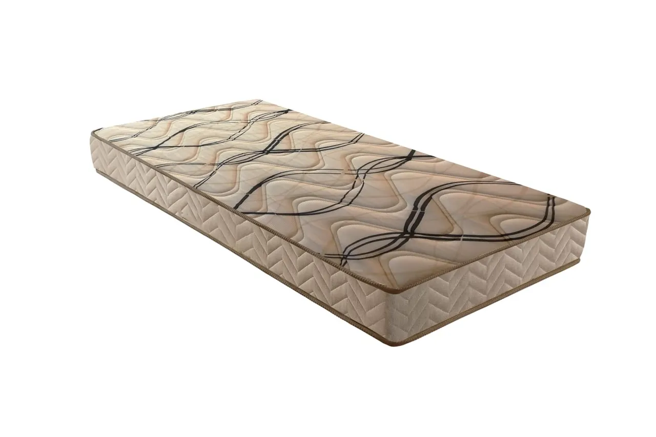 Base em Espuma Aglomerada D80 envolta de Camadas de Espuma Certificada D33, Revestimento em Tecido 100% Poliéster, sendo o Tampo em Matelasse Multiflex e Laterais em em Rústico Bege. Sistema DuoFace e Suporte para Biotipo até 150Kg.