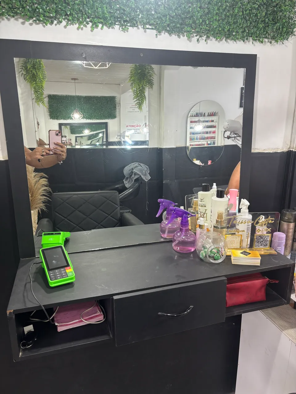 Linda bancada com espelho, perfeita para otimizar seu espaço com elegância e praticidade. Ideal para salões de beleza ou para o seu cantinho de beleza em casa.