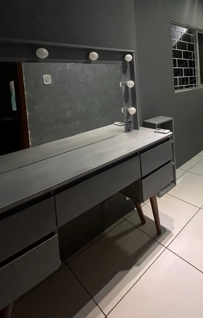 Linda penteadeira camarim com espelho e iluminação embutida. Ideal para maquiagem e cuidados pessoais. Design moderno e funcional, perfeita para o seu cantinho de beleza!