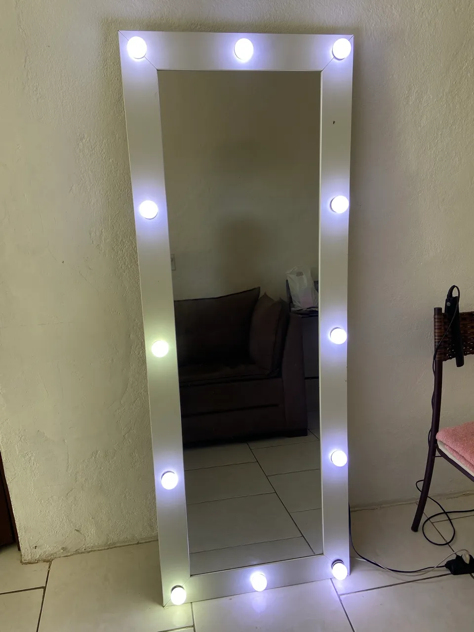 Espelho camarim perfeito para dar um toque especial ao seu espaço de beleza. Com iluminação embutida, ele proporciona a luz ideal para maquiagem e cuidados pessoais. Design moderno e funcional, ideal para quem busca praticidade e elegância. Vai com todas as lâmpadas. NÃO ENTREGO, SOMENTE RETIRADA!!!