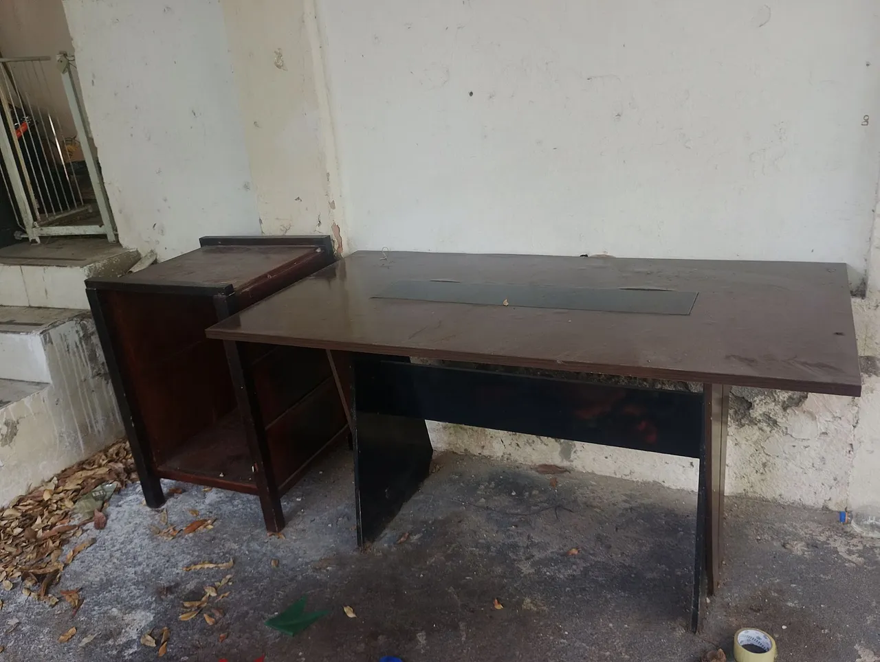 Conjunto de mesa e cômoda de madeira, ideal para seu escritório ou quarto. Design clássico e funcional, perfeito para organizar seus pertences e otimizar o espaço. Aceito oferta