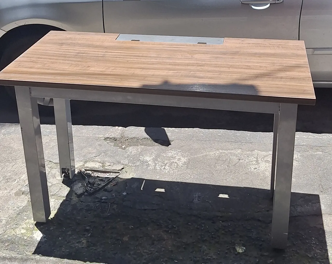Escrivaninha elegante com tampo em madeira e estrutura resistente. Perfeita para seu escritório ou home office, oferecendo funcionalidade e estilo para suas atividades. Mdf.
