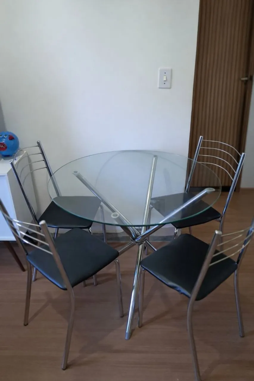Linda mesa para sua casa! Design moderno e elegante, perfeita para diversos ambientes. Detalhes em aço e tampo de vidro, que agregam charme e sofisticação.