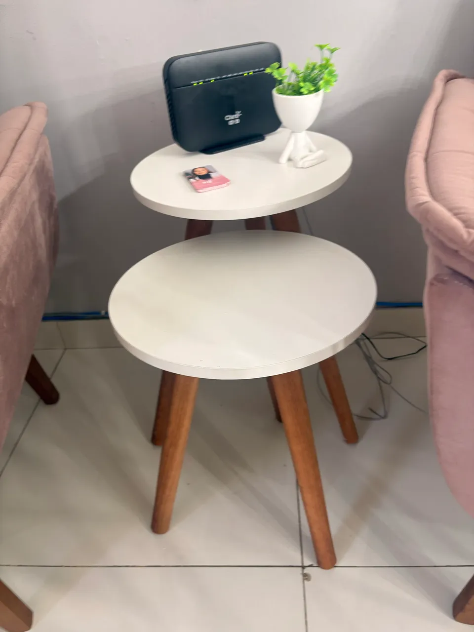 Vendo duas mesas de canto + um carrinho auxiliar, todos em MDF revestido em branco, em ótimo estado.