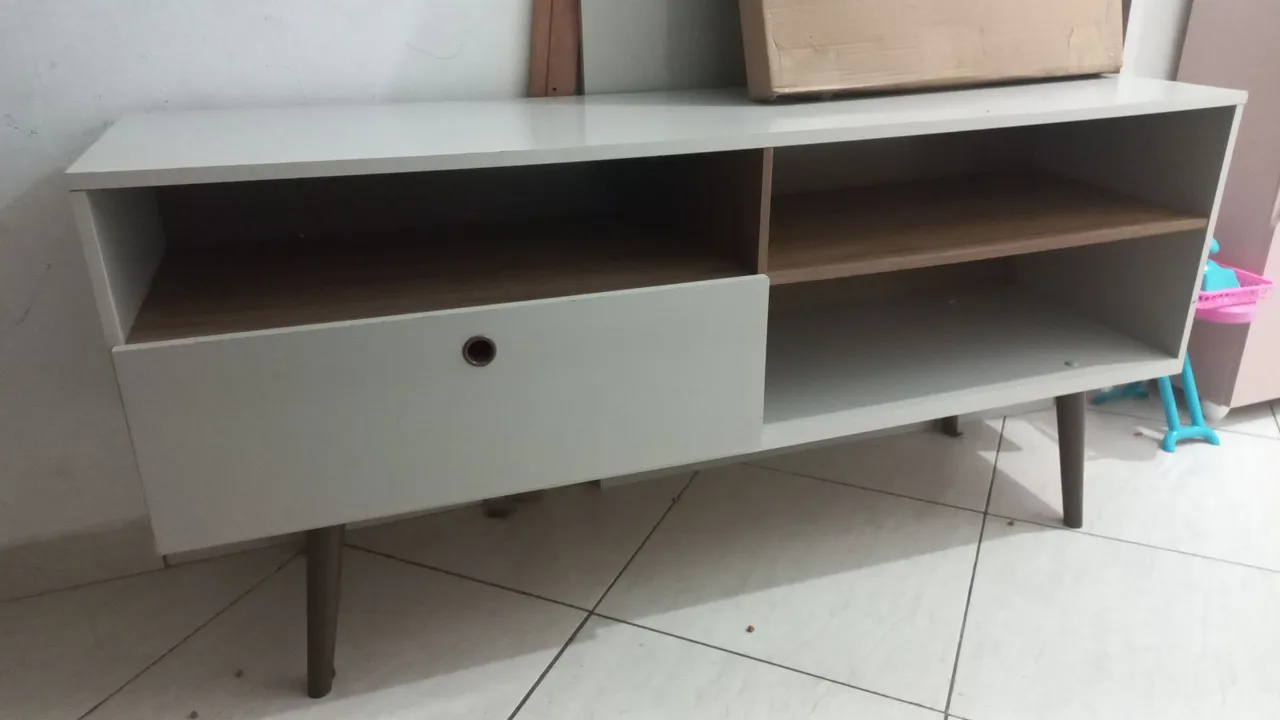 Transforme sua sala com este rack moderno e elegante. Design clean com detalhes em madeira, perfeito para TV e outros eletrônicos. Funcionalidade e estilo em um só produto!