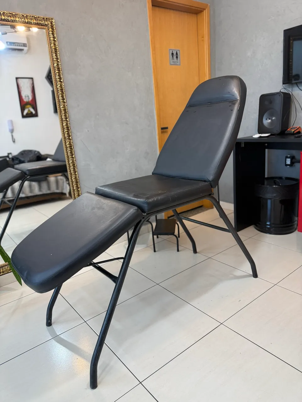 Cadeira para procedimento com 3 posições, ideal para o conforto e precisão durante as sessões de tatuagem ou estética.