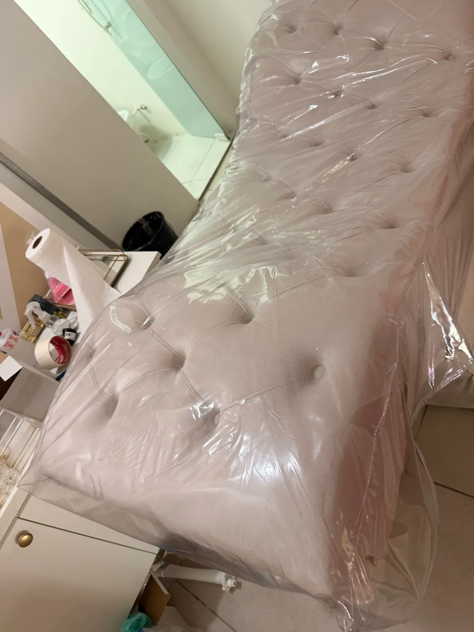 Desfrute do luxo e conforto com esta maca de veludo bege. Design elegante e novo, ideal para adicionar um toque sofisticado ao seu espaço. Perfeita para relaxar e aproveitar momentos de descanso.