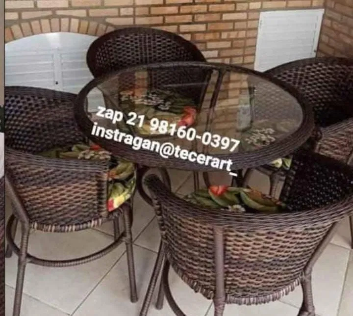 Conjunto de móveis de fibra sintética perfeito para sua área externa ou varanda. Design elegante e resistente, ideal para relaxar e receber convidados com conforto e estilo.
