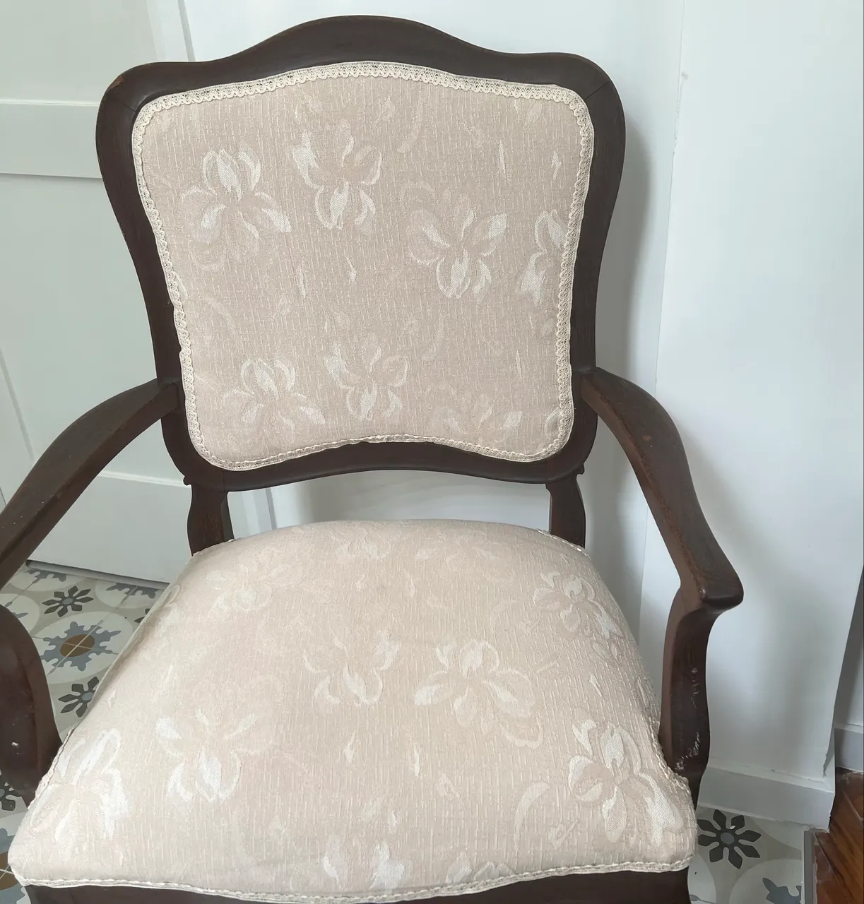 Poltrona clássica Luís XV recém estofada .
