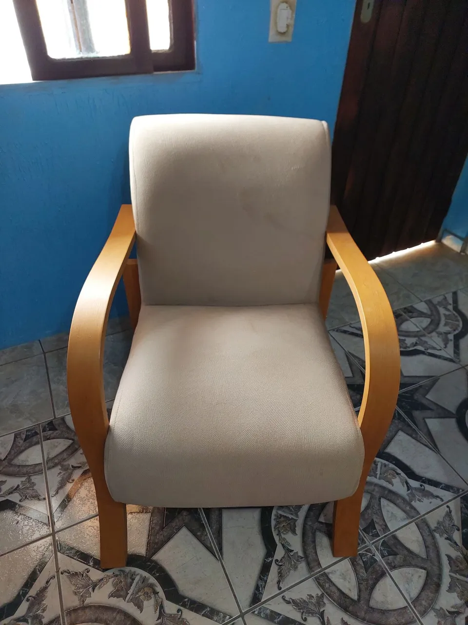 Aconchego e elegância em sua sala! Apresentamos esta poltrona de madeira estofada em veludo, perfeita para momentos de relaxamento. Design sofisticado e conforto garantido.