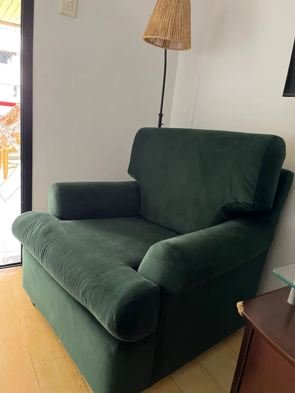 Apresentamos a poltrona perfeita para quem busca sofisticação e conforto. Revestida em veludo macio, esta poltrona é o toque de elegância que seu ambiente precisa. Duas poltronas com Design moderno e confortável na cor Verde escuro. Só vendo o par, as duas portonas juntas! 500,00 cada uma.
