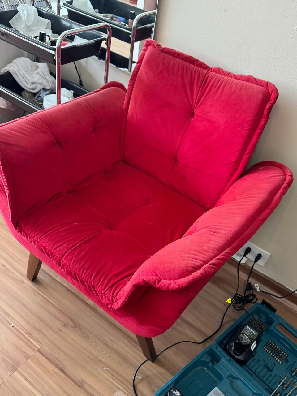 Poltrona vermelha confortável e linda. Para dar aquele charme sofisticado no seu ambiente.
