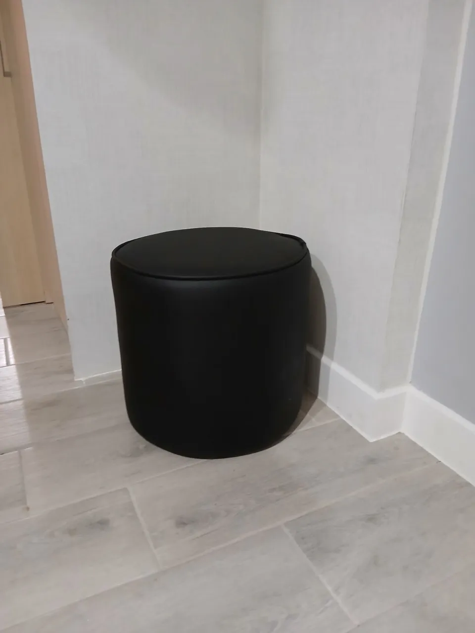 Puff em couro preto, design moderno e elegante para complementar seu ambiente. Perfeito para sala de estar, quarto ou escritório, agregando conforto e estilo.