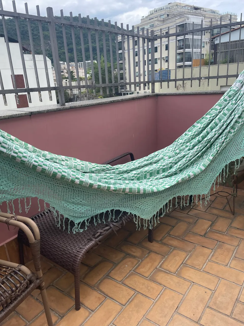 Desfrute do conforto e relaxamento com esta rede de deitar. Tecido super resistente e com pouquíssimo uso, Barra de crochê.