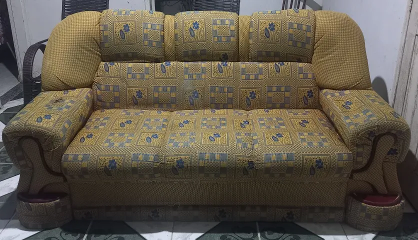 Sofá confortável e espaçoso, ideal para relaxar e receber visitas. Perfeito para sua sala de estar, proporcionando um ambiente acolhedor e elegante. Não é novo , porém está em boas condições.