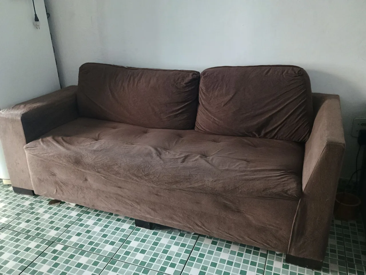Sofá confortável e espaçoso, ideal para relaxar e receber visitas. Perfeito para sua sala!