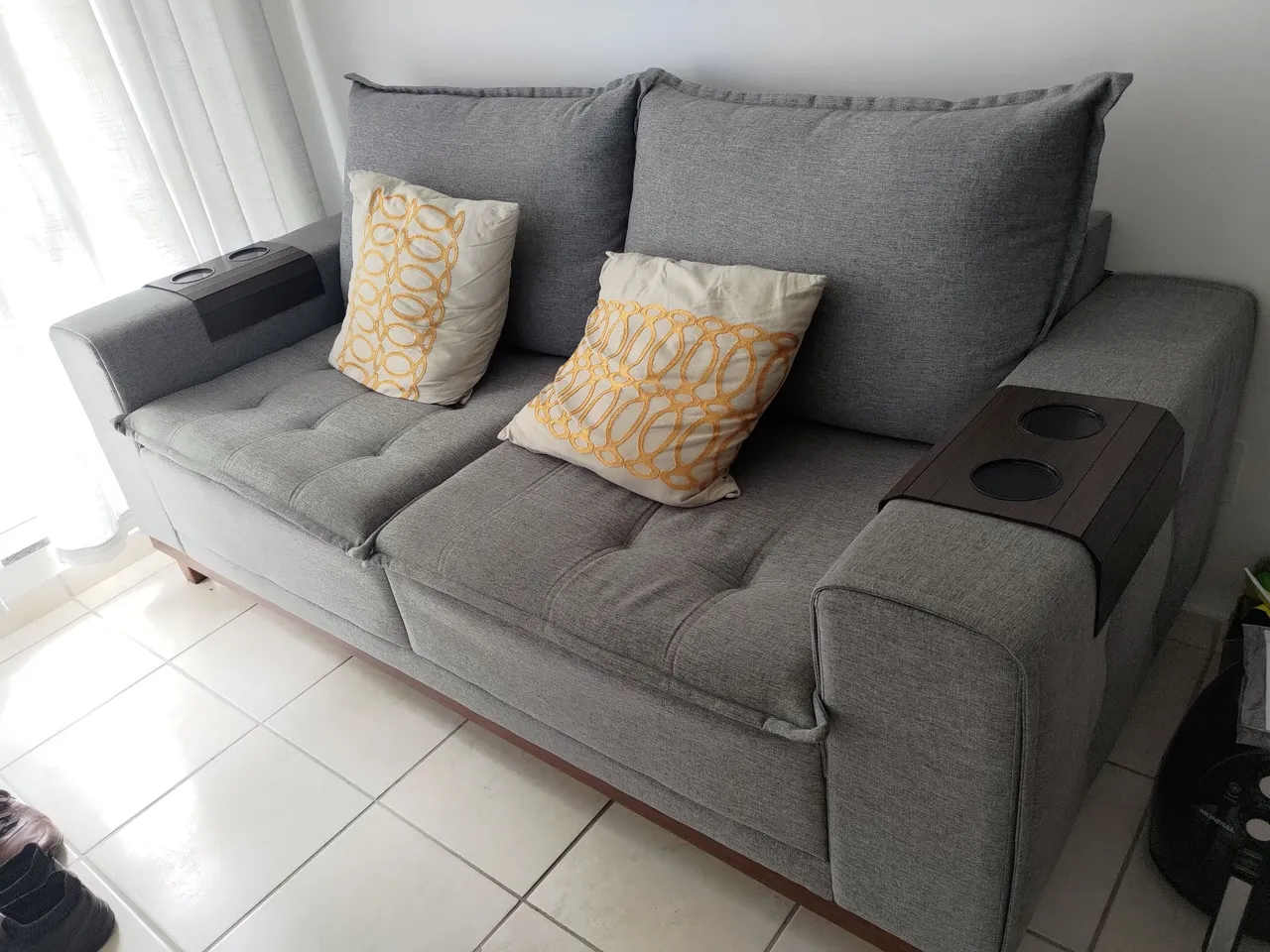 Leva de brinde 2 almofadas e dois apoio de braço para copos.