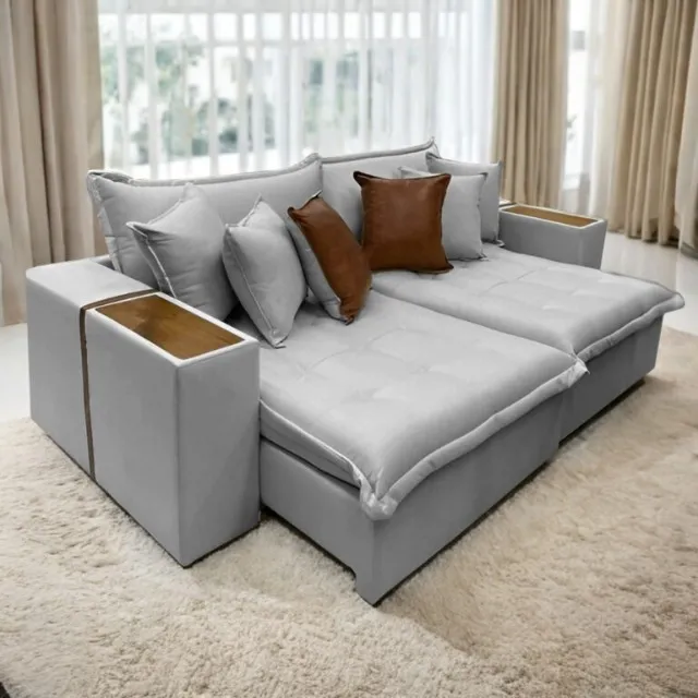 Sofá Cama Tebas 2,30 m Linho Molas Bonnel