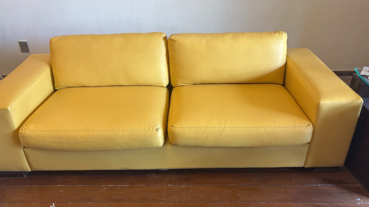 Sofás em courino amarelo vibrante.