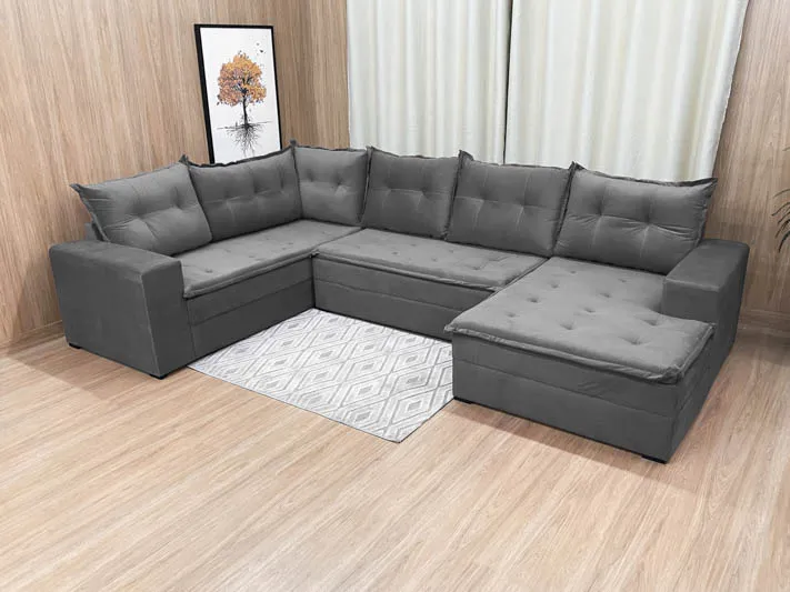 O revestimento é em tecido veludão Premium, deixando a superfície do sofá muito mais macia.