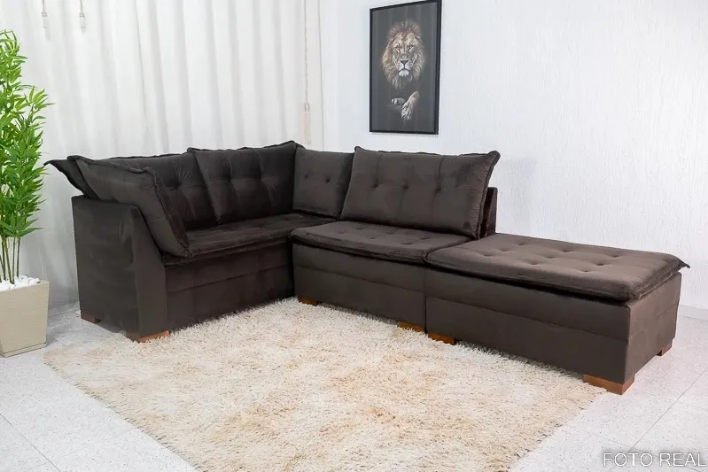 O encosto são com almofadas soltas, compostas de fibra siliconada o que proporciona mais conforto.