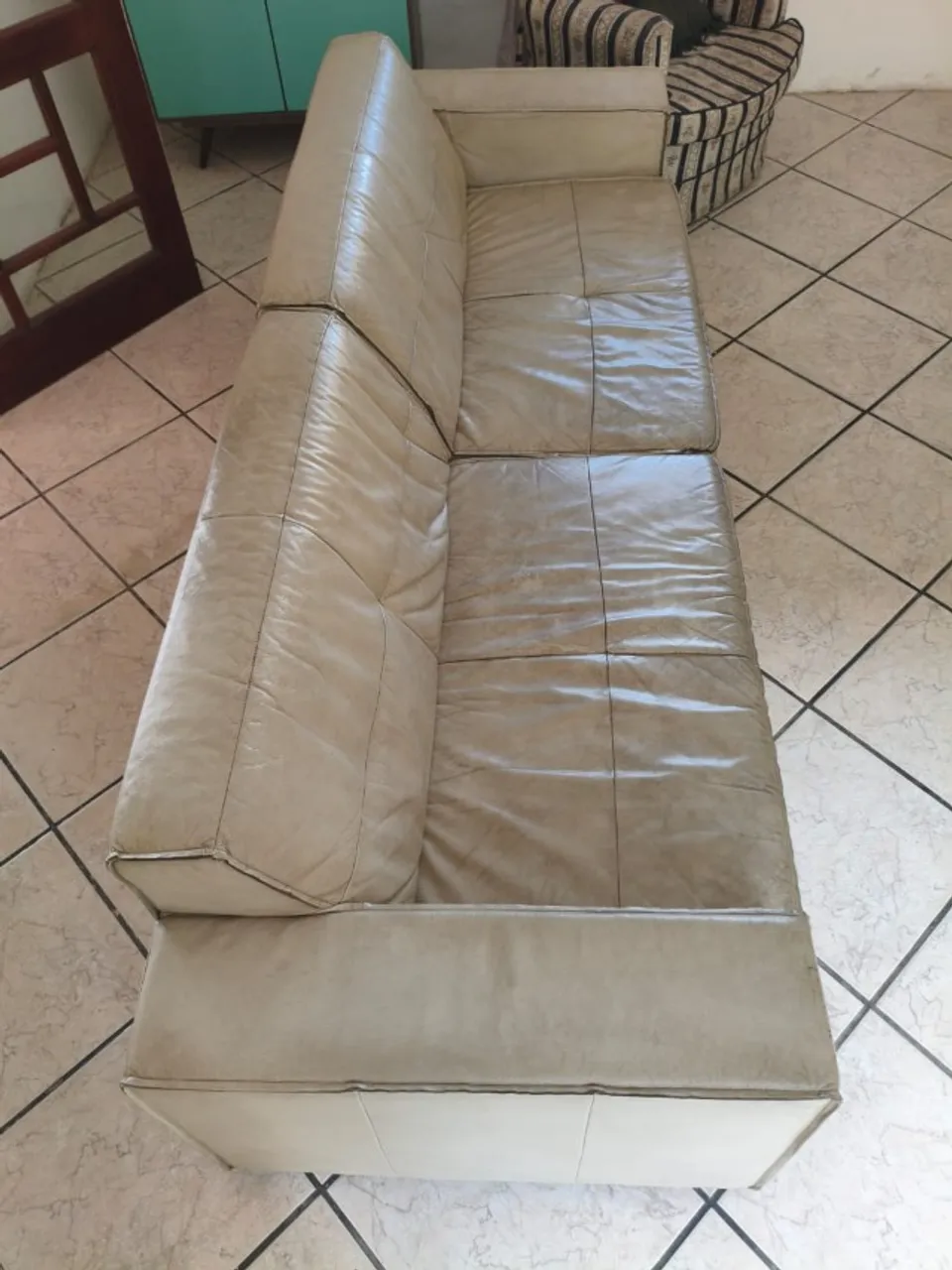 Sofa de Couro 4 lugares, Bege. Condições razoáveis, precisando de uma higienização.