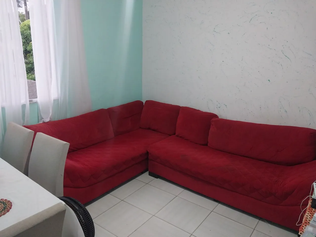 Sofá de canto espaçoso e confortável, ideal para relaxar e receber amigos. Ele precisa de uma limpeza e um braço está com a espuma afundada,porém ele está em ótimas condições. Aceito cartão com o juros por conta do comprador, e parcelo 2x