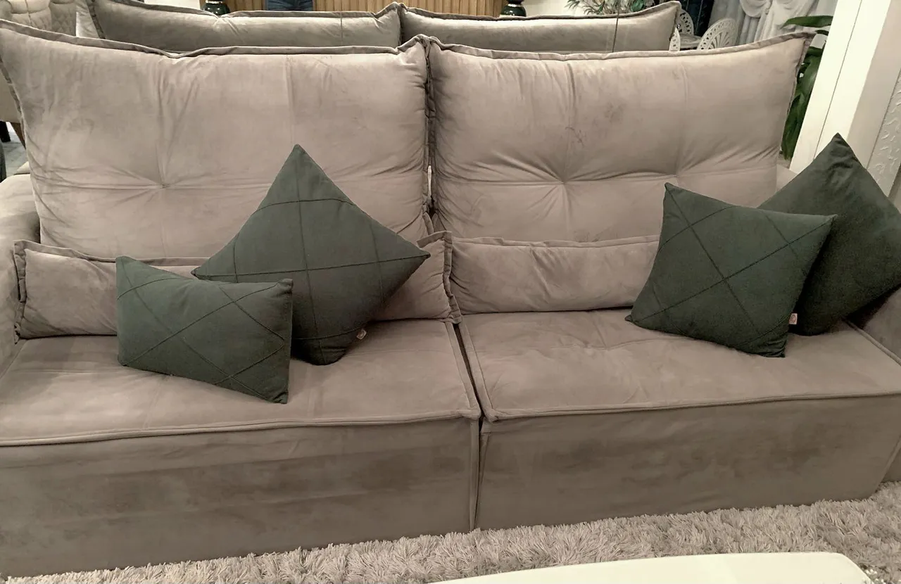 Vendo Sofá Retrátil, 2,70cm de largura, tecido Suede Cinza, confortável, aberto vira uma Cama de Casal King, medindo 1,75cm de comprimento. Em perfeito estado de conservação, confortável e sem danos.