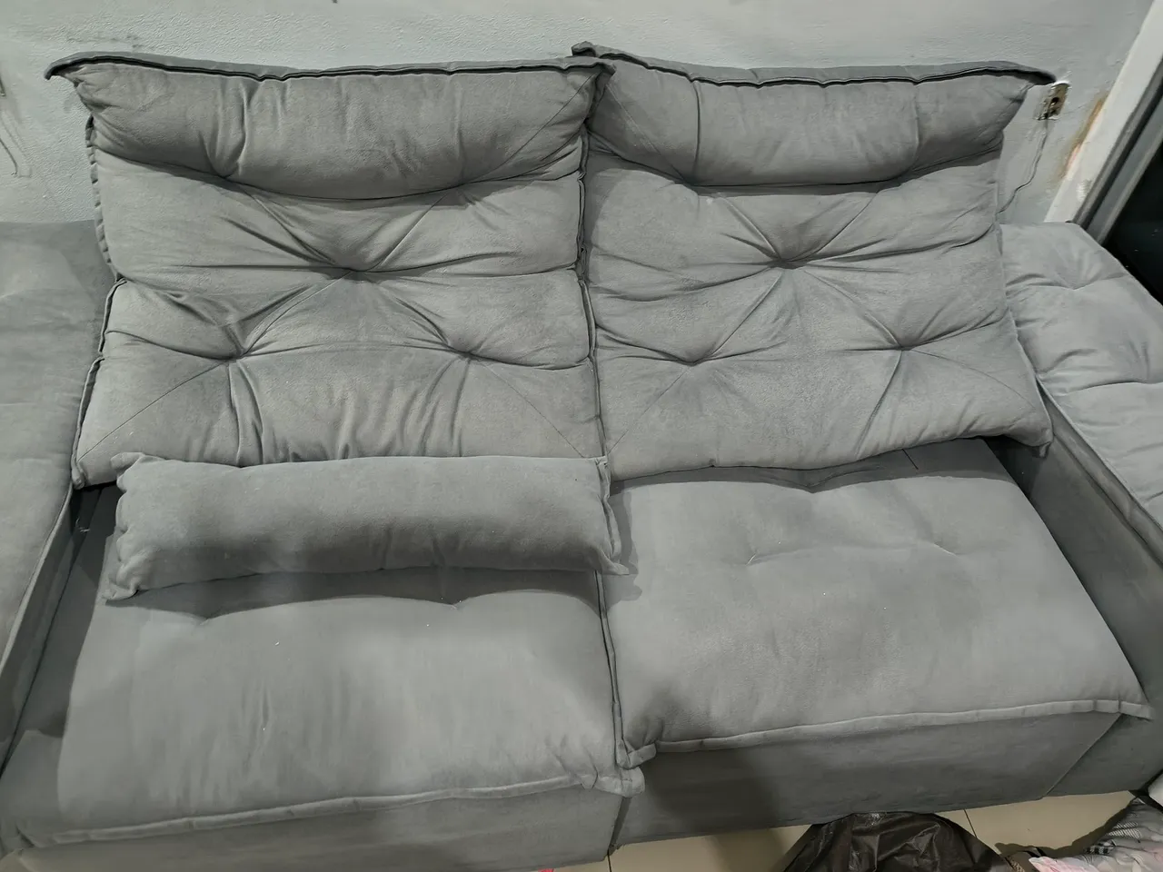 sofá retrátil, perfeito para transformar sua sala de estar! Com apenas 6 meses de uso, este sofá oferece conforto e elegância. Desfrute de momentos relaxantes com este móvel que combina estilo e praticidade.