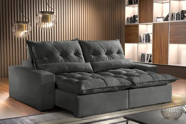 - Assento: Percinta elástica, molas espirais, pillow preenchido com fibra siliconada