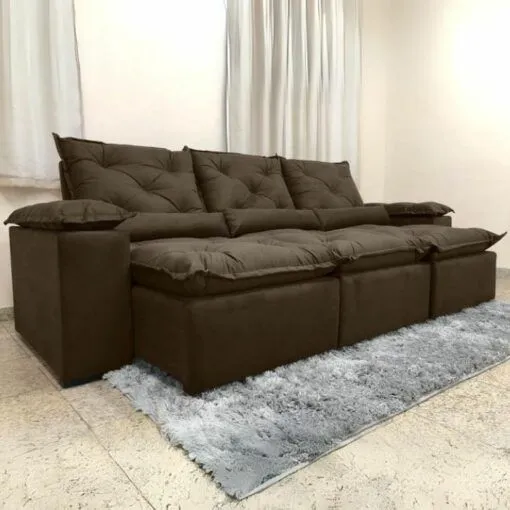 Desfrute do conforto e elegância do Sofá Retrátil Grécia! Design moderno e retrátil para se adaptar a qualquer espaço. Perfeito para relaxar e receber visitas.
