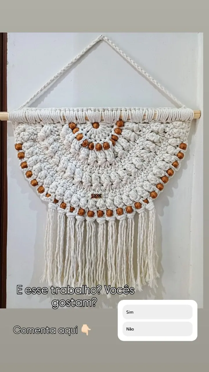 Decore seu ambiente com este lindo painel meia-lua feito à mão em macramê, com detalhes em contas de madeira.