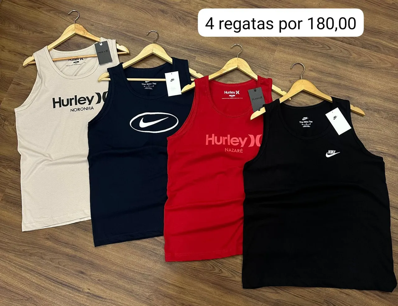 4 Regatas Sortidas Nike e Hurley. Fica a critério do cliente a marca.