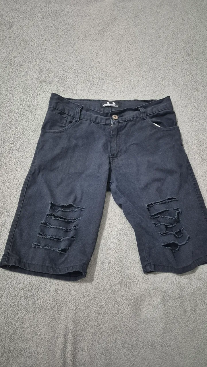 Bermuda jeans com detalhes destroyed, ideal para um visual moderno e despojado. Perfeita para diversas ocasiões!