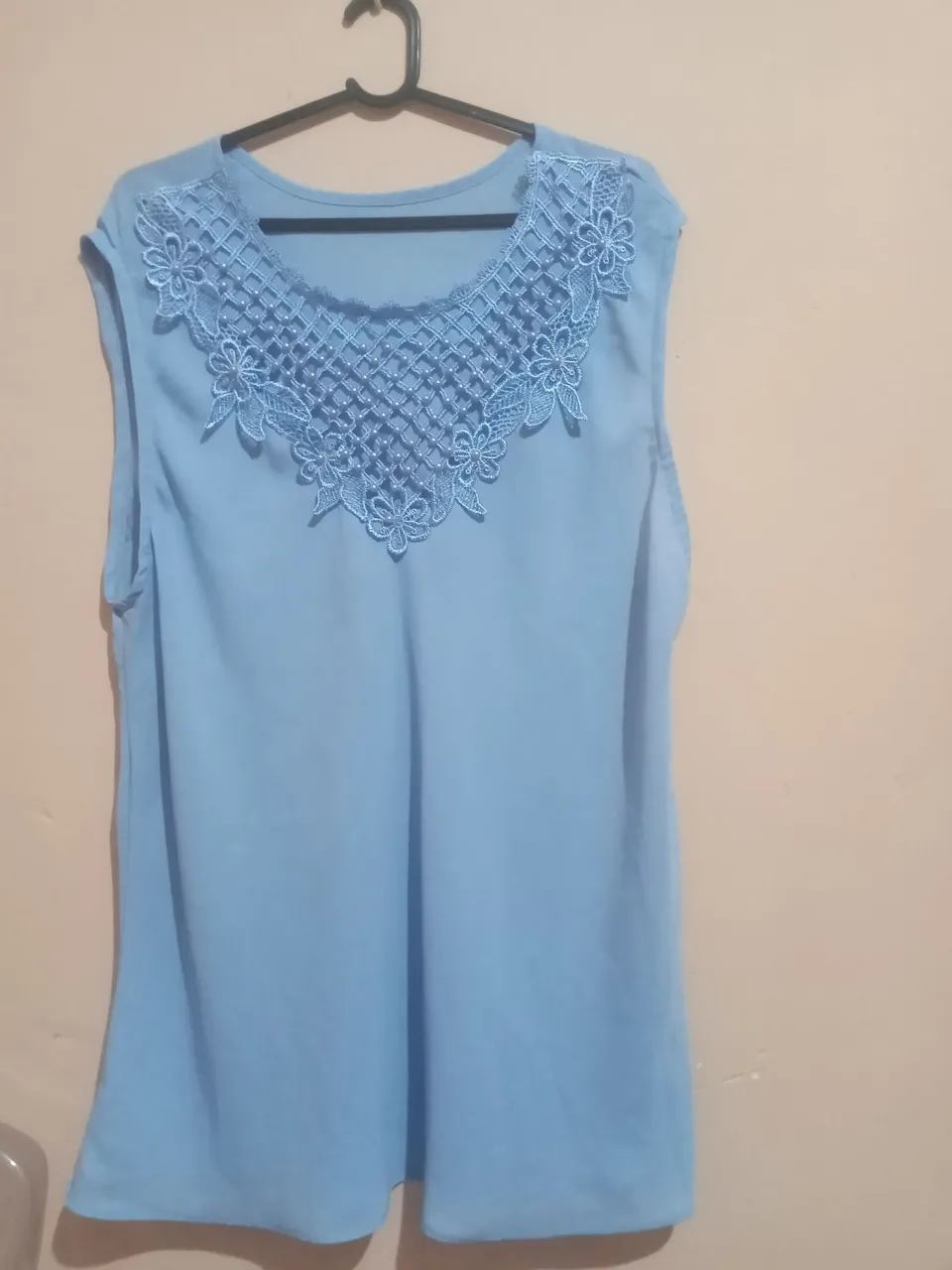 Linda blusa azul com detalhes em renda. Perfeita para um look elegante e confortável. Tamanho 42.