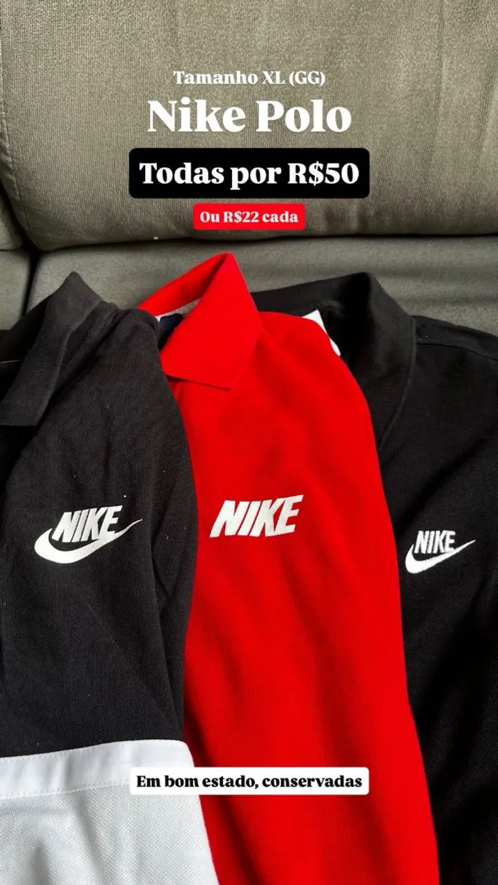 Camisas Polo Nike originais em ótimo estado, perfeitas para o seu dia a dia. Conforto e estilo em uma única peça! Tamanho XL.