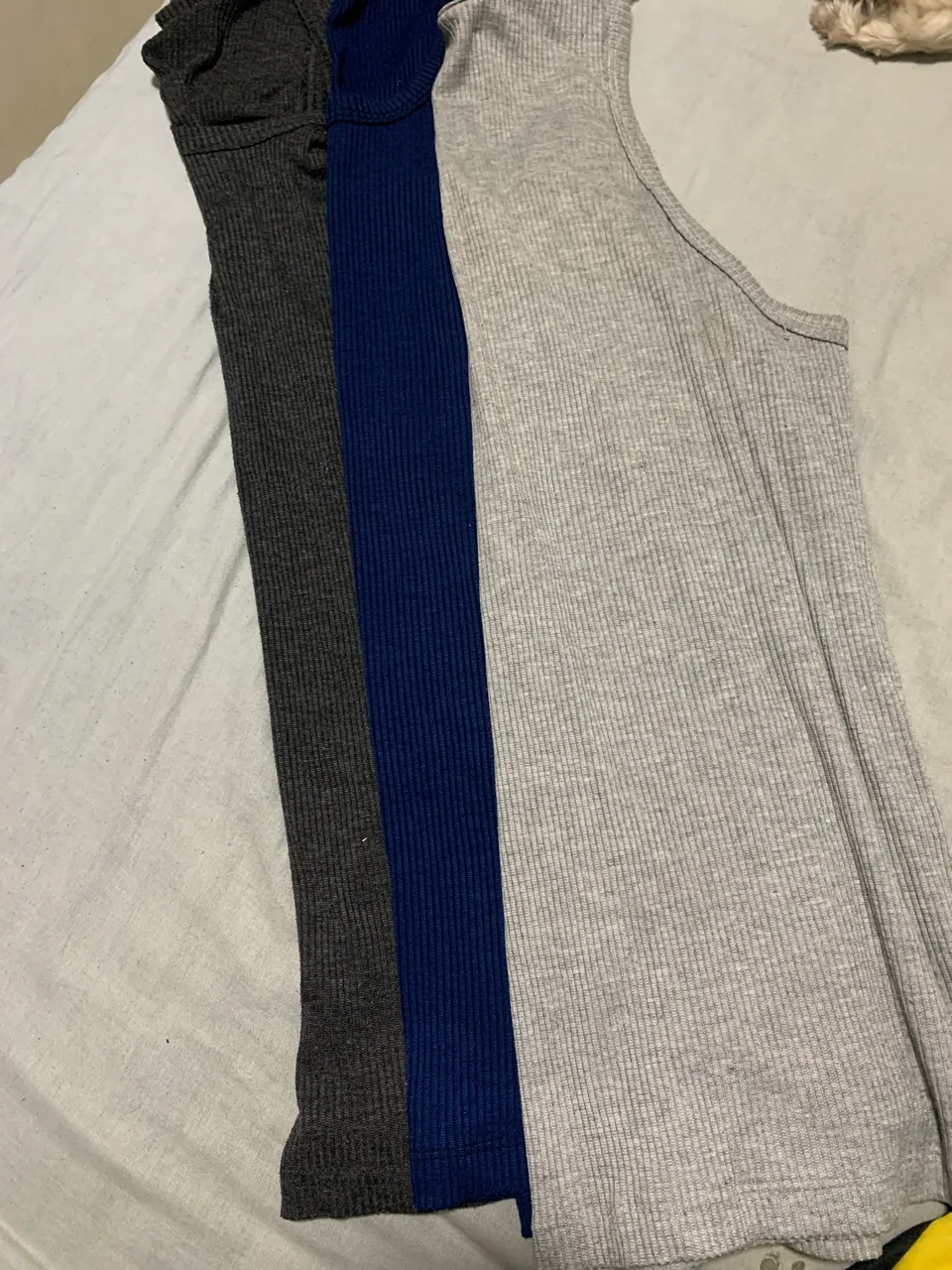 Kit com 3 regatas em ótimo estado, perfeitas para diversas combinações. Cores versáteis e tecido confortável para você arrasar no dia a dia!