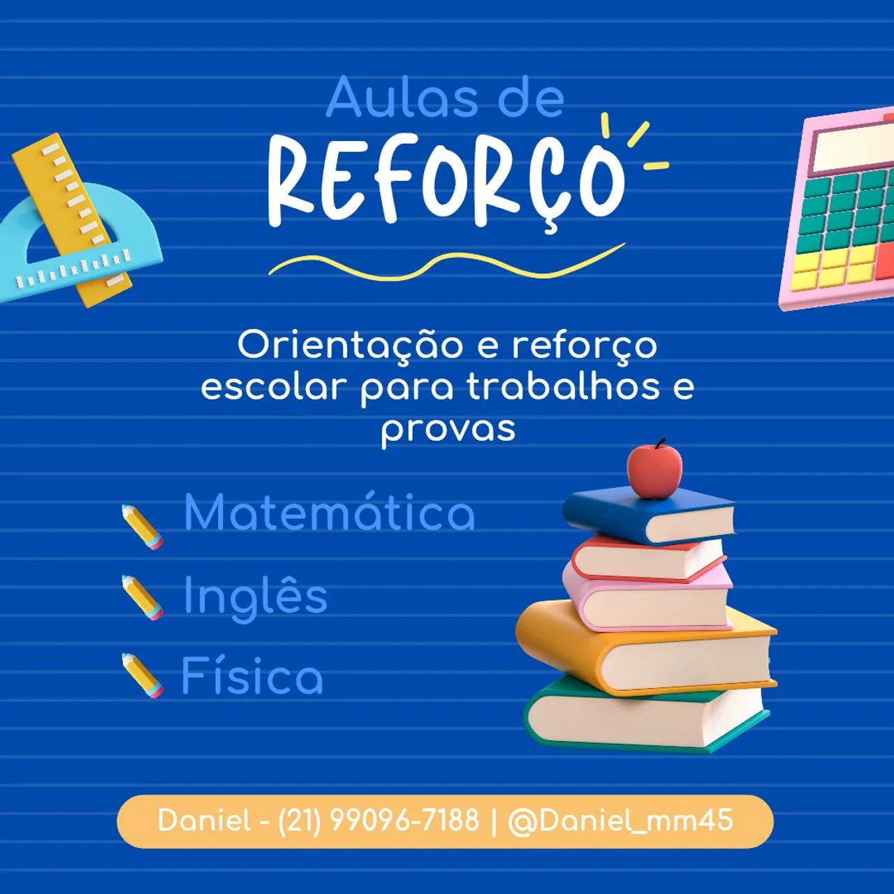 Além da matemática, também estou aprendendo e ensinando Física, principalmente nos conteúdos iniciais, sempre de forma simples e prática.