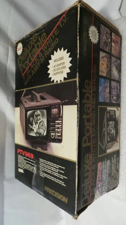 Rádio/tv 5 Polegadas Marca Precision Modelo PTV-969 Funcionando o rádio e a tv tem chuviscos quando liga pois não consegui colocar antena externa pois está sem antena! Produto raro com a embalagem original e os isopores internos com manual de instruções e acompanha fonte!!