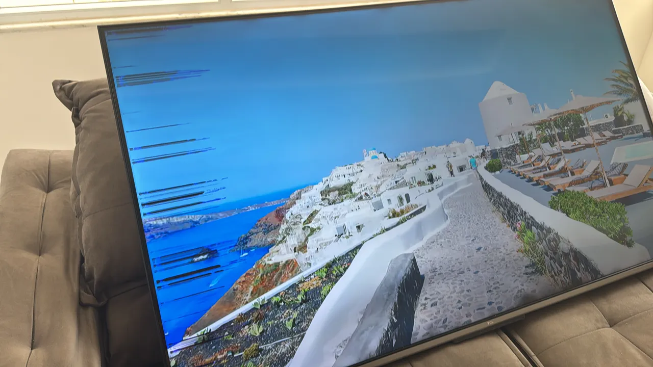 A TV está com um defeito pois apareceram umas manchas nas laterais. Nada que impeça seu funcionamento. Funciona bem imagem e som.