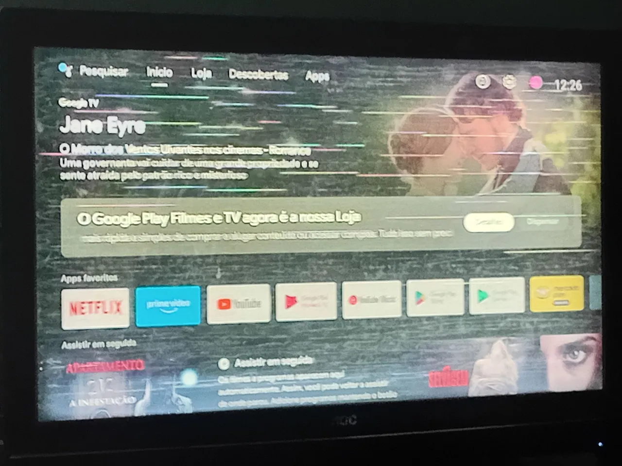 Vendo TV AOC de 32 polegadas nao e smar mais vai aparelho que transforma em smart so esta com a tela desse jeito mais da pra vê funcionando tudo normalmente vai controles 350 so vir buscar so dinheiro ja mao