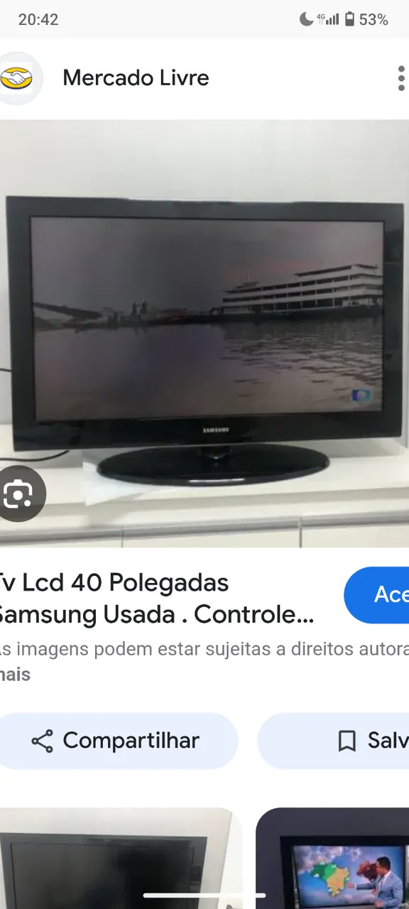 Imagem linda cores vivas fortes é uma TV 40 polegadas Samsung LCD não é smart. Funcionando perfeitamente sem defeitos..... não tenho os pés por isso deverá fixar na parede.... chama no ZAP. 21 ... ver número