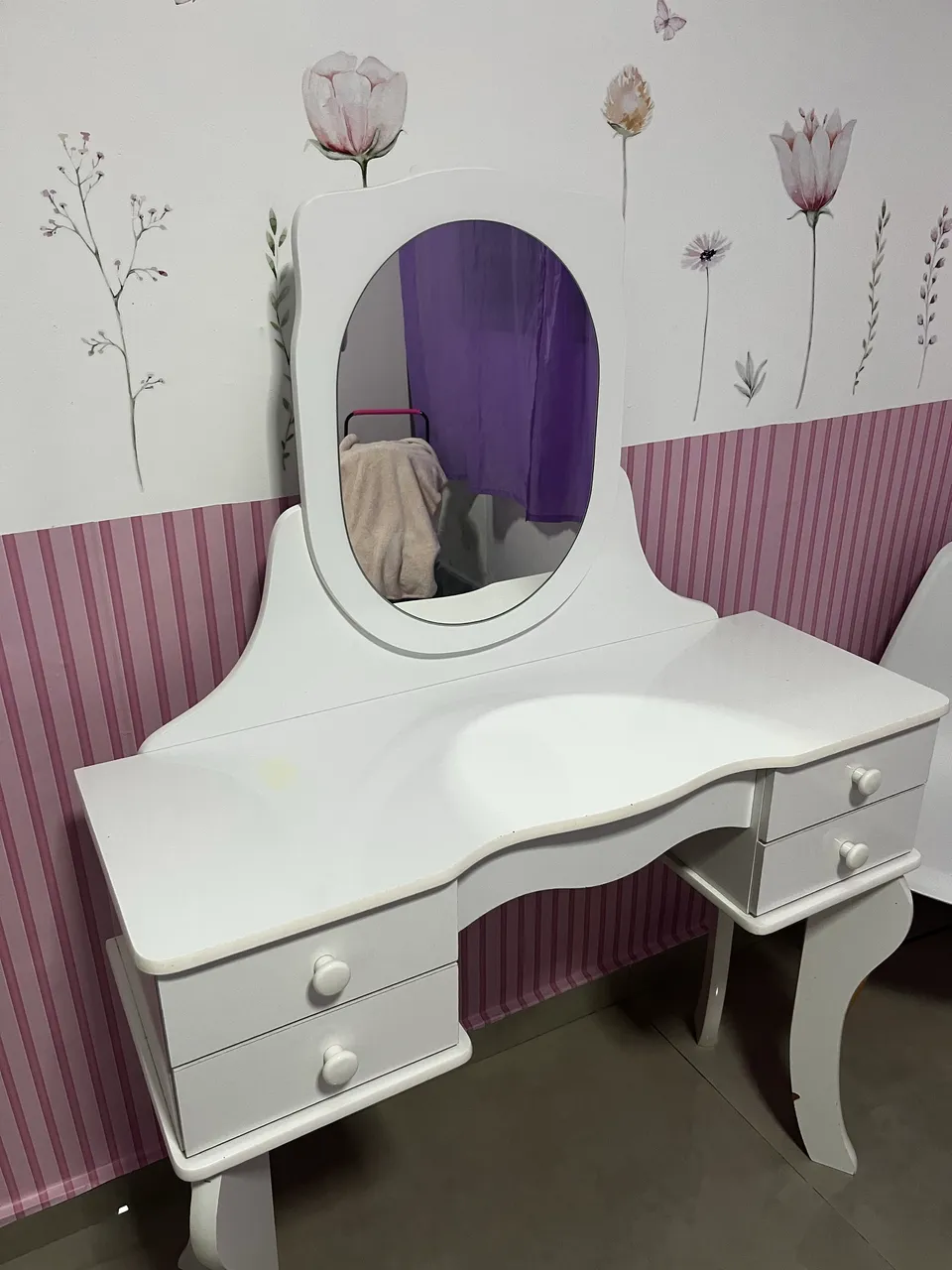 Linda penteadeira branca, perfeita para organizar seus cosméticos e itens de beleza. Design elegante e funcional, ideal para deixar seu cantinho ainda mais charmoso.